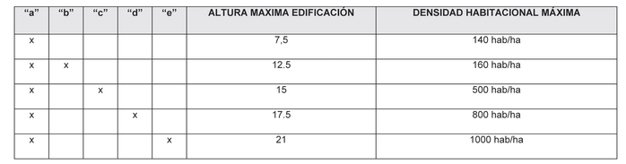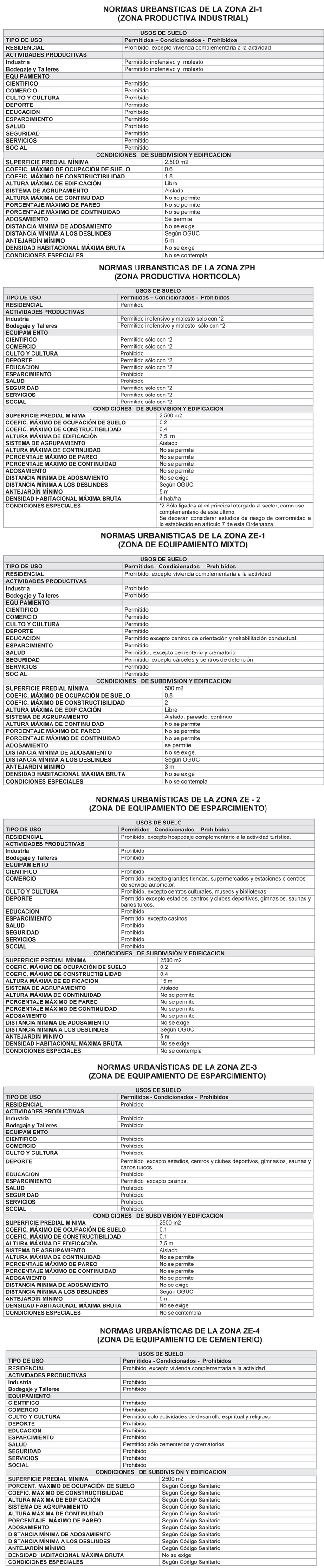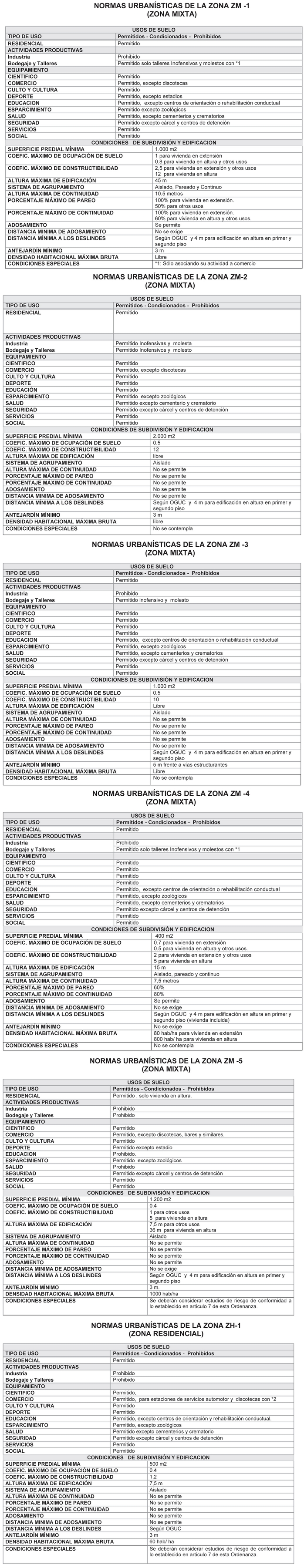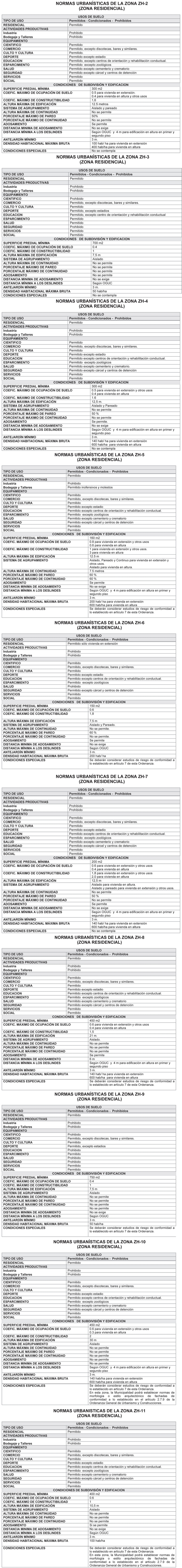 Las normas urbanísticas y condiciones específicas de cada zona son las siguientes:
