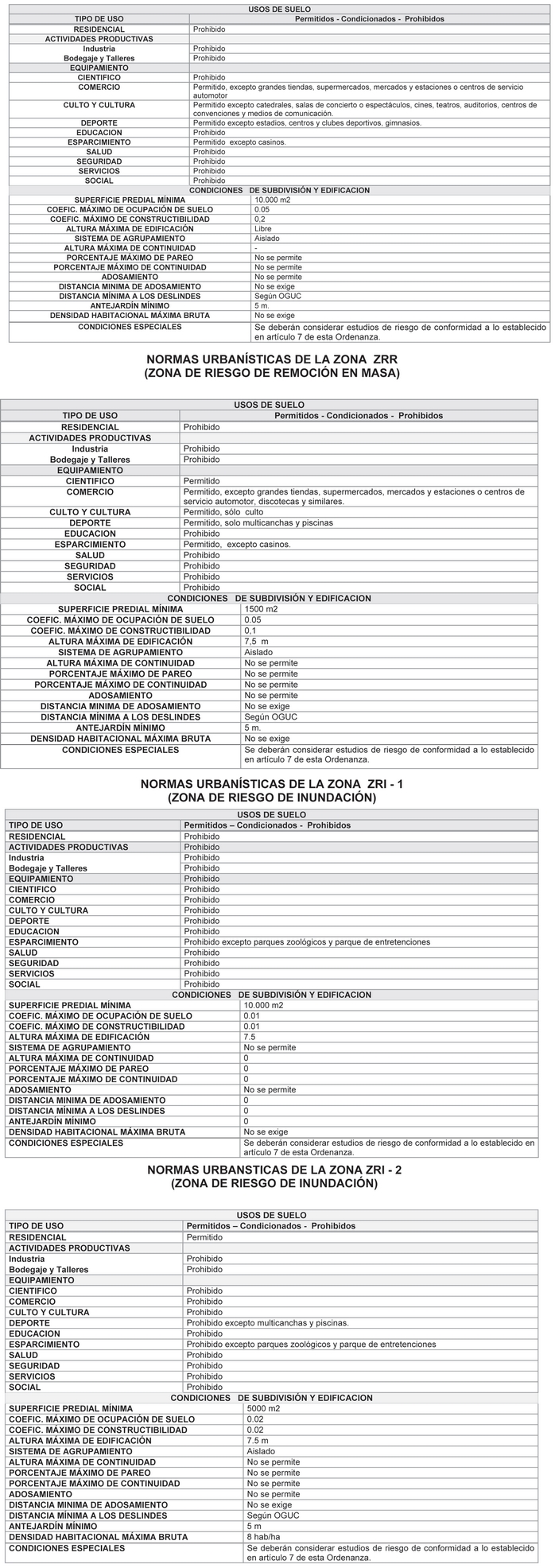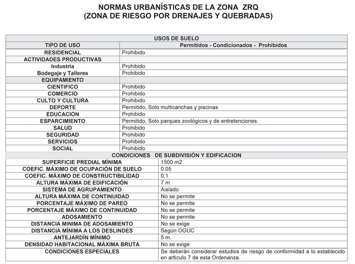 En estas zonas se deberá dar cumplimiento a las condiciones de uso urbano dispuestas en el Capítulo III del Anexo Estudio de Riesgo del presente Plan Regulador Comunal. Los estudios o informes de riesgo que se desarrollen para estas zonas deberán estar suscritos por un profesional especialista. Sin este estudio no se podrá autorizar permisos de loteo, urbanización o de edificación.
