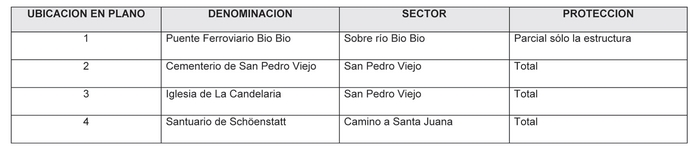 ARTÍCULO 13.- PROTECCIÓN PARA INMUEBLES DE CONSERVACIÓN HISTÓRICA.- Los Inmuebles de Conservación Histórica que se identifican en el área urbana regulada por el presente Plan Regulador Comunal y su protección en función del grado de intervención, son los siguientes: