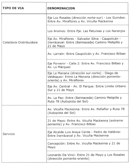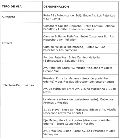 1º.- La Red Vial Básica de la comuna de Peñaflor estará constituida por las vías que se detallan a continuación, las que se agrupan de acuerdo a las siguientes categorías viales: