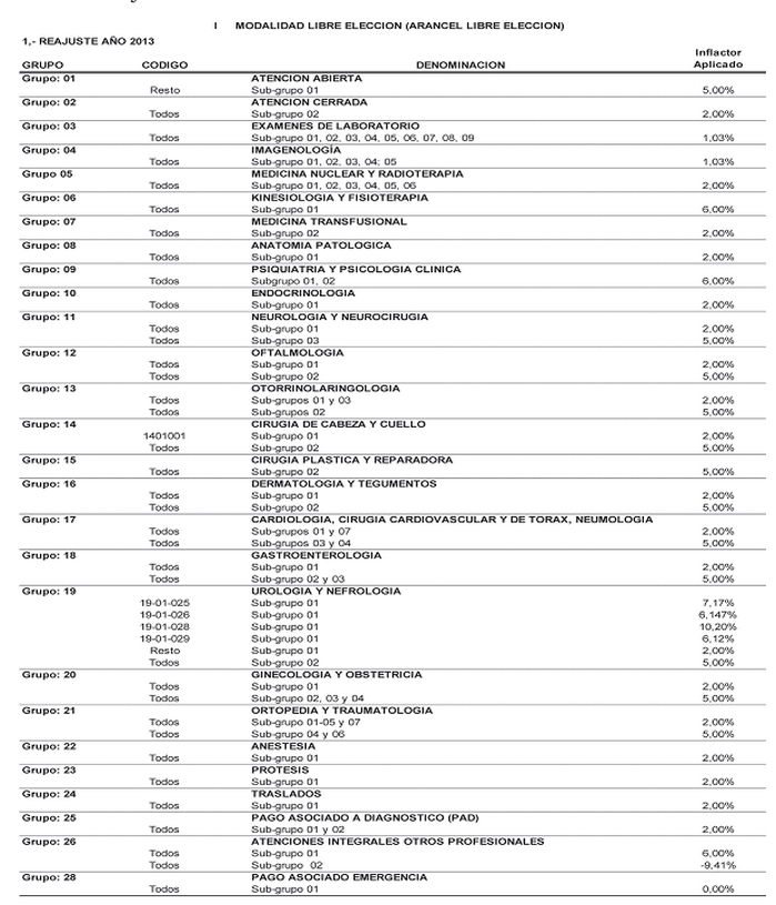 2.2 El porcentaje de reajuste se calcula sobre los valores de las prestaciones del Arancel vigente en nivel 1 o básico.