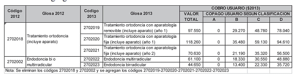 1.- Modifícase la resolución exenta N° 176, de 28 de enero de 1999, publicada en el Diario Oficial de 8 de febrero de 1999, que aprobó el Arancel del Régimen de Prestaciones de Salud del Libro II del DFL N° 1/2005, del Ministerio de Salud, modificada por la resolución exenta N° 950, de 18 de abril de 2000, publicada en el Diario Oficial de 15 de mayo de 2000, por la resolución exenta N° 30, de 22 de enero de 2001, publicada en el Diario Oficial de 25 de enero de 2001, por la resolución exenta N° 25, de 21 de enero de 2002, publicada en el Diario Oficial de 4 de febrero de 2002, por la resolución exenta N° 43, de 27 de enero de 2003, publicada en el Diario Oficial de 1 de febrero de 2003, por la resolución exenta N° 365, de 26 de enero de 2004, publicada en el Diario Oficial de 4 de febrero de 2004, por la resolución exenta N° 50, de 1 de febrero de 2005, publicada en el Diario Oficial de 12 de febrero de 2005, por la resolución exenta N° 133, de 8 de marzo de 2006, publicada en el Diario Oficial de 10 de marzo de 2006, por la resolución exenta N° 146, de 27 de marzo de 2007, publicada en el Diario Oficial de 31 de marzo de 2007, por la resolución exenta N° 249, de 29 de abril de 2008, publicada en el Diario Oficial de 7 de mayo de 2008, por la resolución exenta N° 48, de 30 de enero de 2009, publicada en el Diario Oficial de 7 de febrero de 2009, por la resolución exenta N° 330, de 28 de mayo de 2009, publicada en el Diario Oficial de 5 de junio de 2009, por la resolución exenta N° 39, de 25 de enero de 2010, publicada en el Diario Oficial de 4 de febrero de 2010, por la resolución N° 249, de 18 de abril de 2011, publicada en el Diario Oficial de 7 de mayo de 2011, por la resolución N° 490, de 5 de julio de 2011, publicada en el Diario Oficial de 27 de agosto de 2011, y por la resolución N° 1.261, de 29 de diciembre de 2011, publicada en el Diario Oficial de 31 de enero de 2012, todas de los Ministerios de Salud y Hacienda, con el objeto de reajustar el valor de las prestaciones que figuran en dicho Arancel e incorporar las modificaciones indicadas según el siguiente detalle: