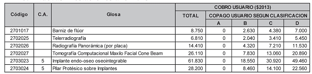 Núm. 811 exenta.- Santiago, 21 de diciembre de 2012.- Visto y considerando: Lo propuesto por el Director del Fondo Nacional de Salud, en oficio reservado N° 20198, de 21 de diciembre de 2012; lo establecido en el artículo N° 159 del Libro II del DFL N° 1/2005, del Ministerio de Salud, y lo dispuesto por dicha normativa para la determinación del valor de las prestaciones del Régimen de Salud que se otorguen por la Modalidad de Atención Institucional y de Libre Elección que ella regula; lo dispuesto en los artículos 4° N° 2, 7° y 50, letra b), todos del Libro I del DFL N° 1, de 2005, del citado Ministerio, y la resolución N°1.600, de 2008, de la Contraloría General de la República, dicto la siguiente