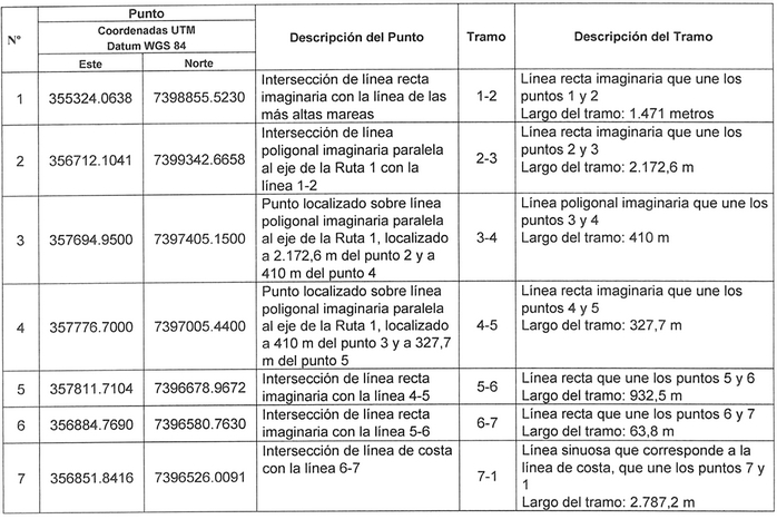 El área territorial de la aplicación de la presente Modificación Plan Regulador Sector Norte Tercera Etapa, Chimba Norte Antofagasta, señalada en el Artículo 5.4 de la presente Ordenanza, está descrita por los siguientes puntos y tramos del polígono que se detalla a continuación, según base topográfica levantamiento aerofotogramétrico, realizado por la empresa Geocen, año 2011, Coordenadas UTM en metros Datum Sirgas WGS-84, Elipsoide GRS-80: