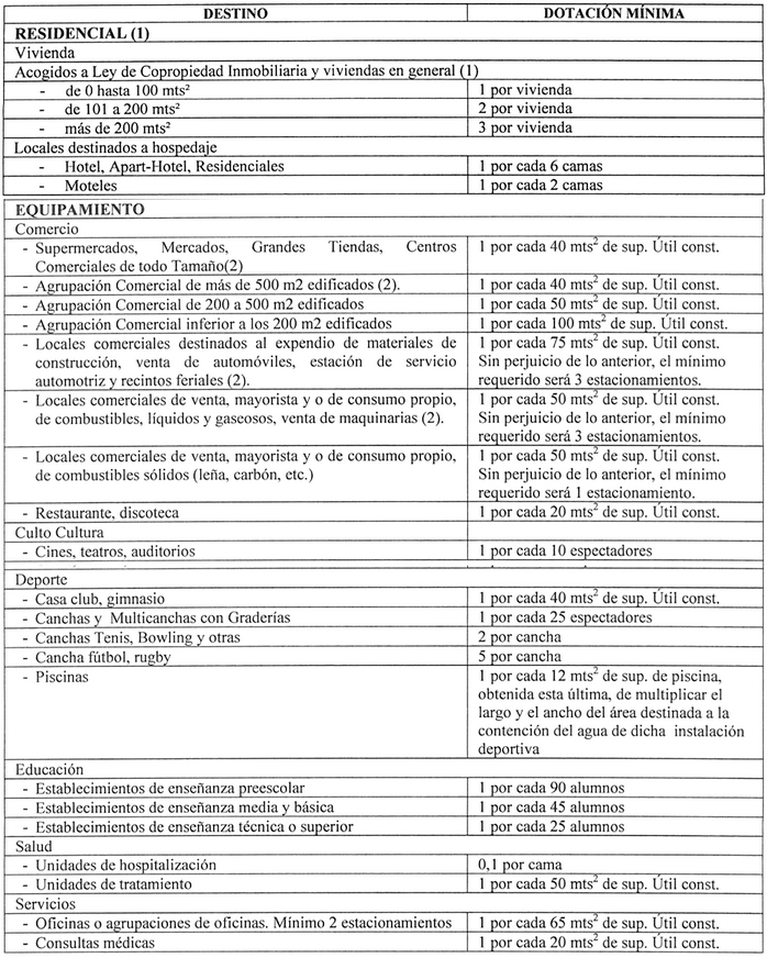 a) En edificios o instalaciones que consulten dos o más destinos diferentes, el estándar mínimo se aplicará a la superficie construida para cada destino. El número de estacionamientos exigibles será la suma del número de estacionamientos que originen cada una de dichas superficies.