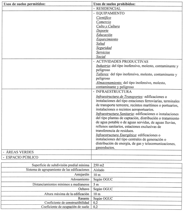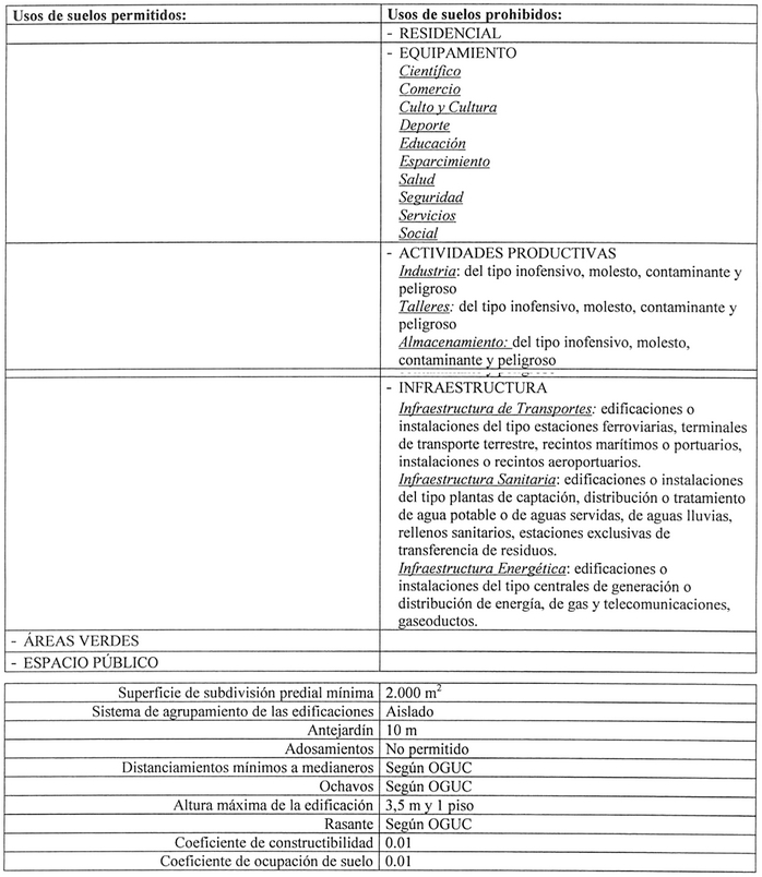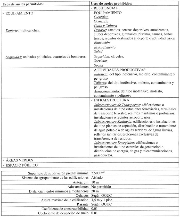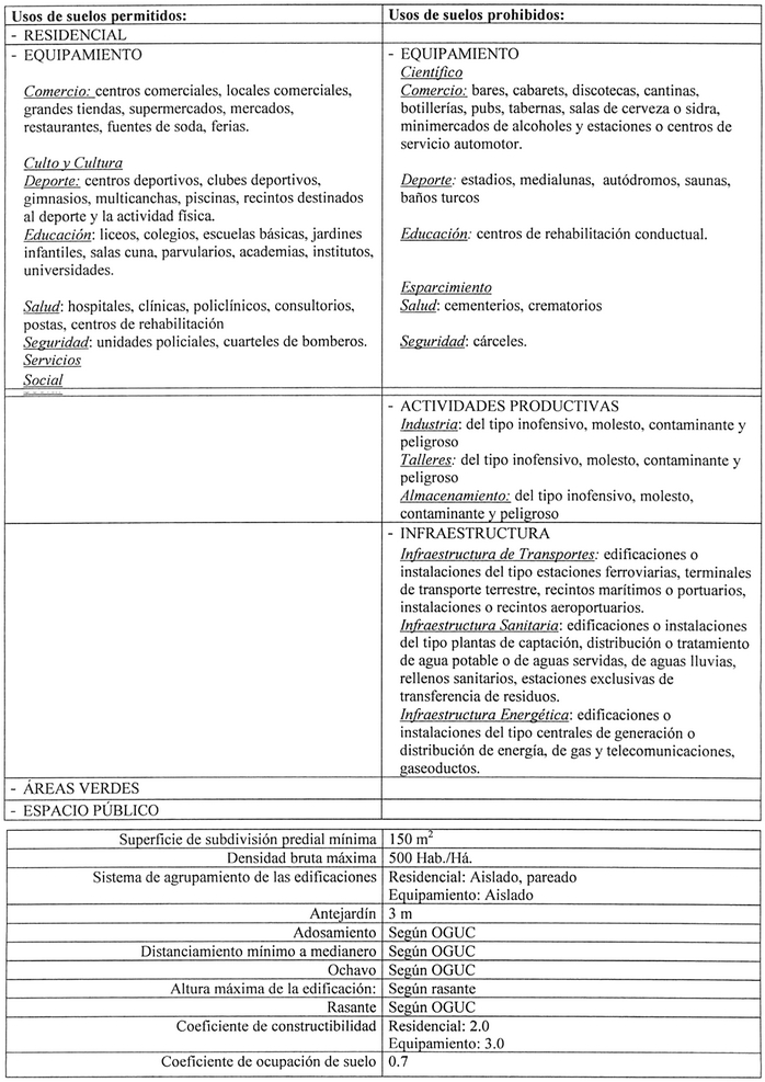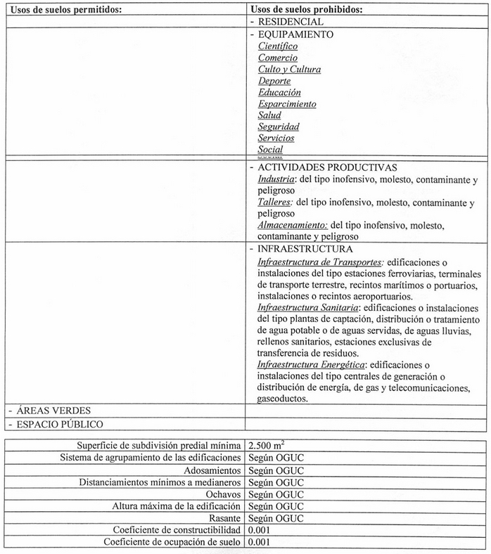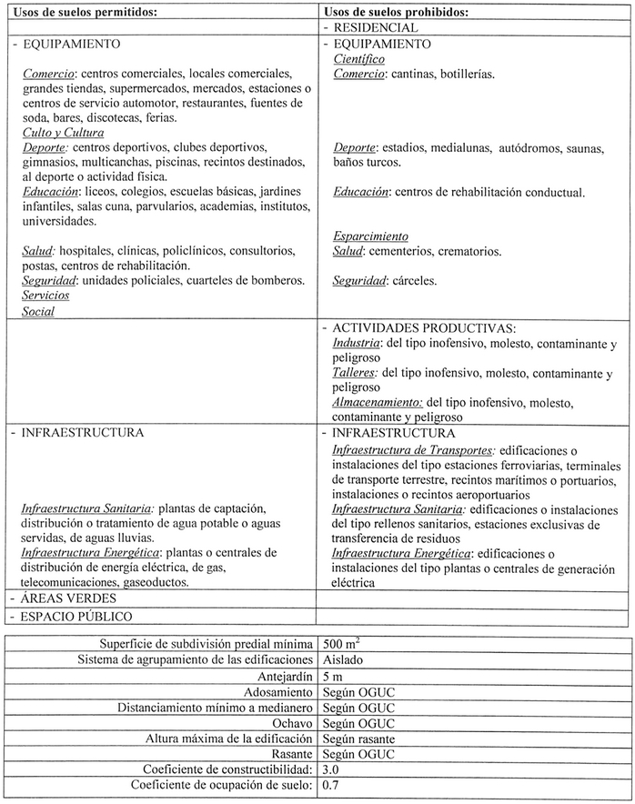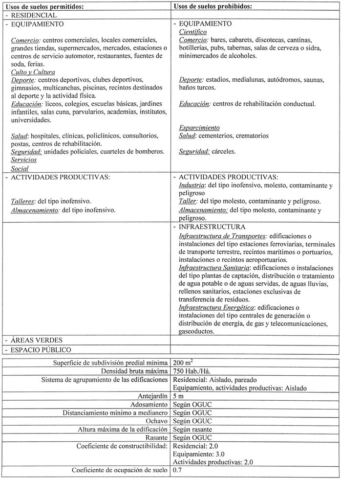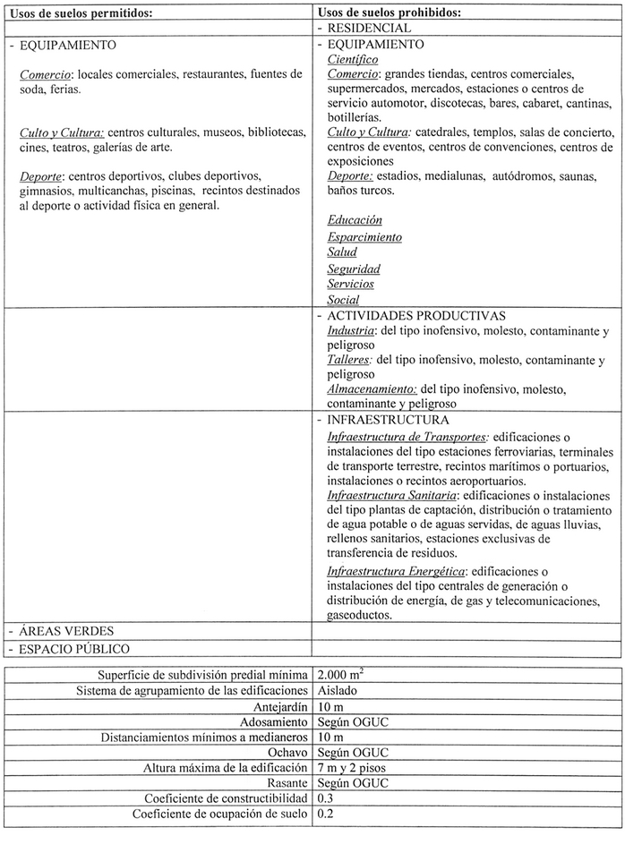 Los usos de suelo permitidos en la zona ZAV corresponderán al de área verde y espacio público, junto con destinos de equipamiento complementario y compatible con el uso de área verdes, de acuerdo a lo establecido en el artículo 2.1.31 de la OGUC.