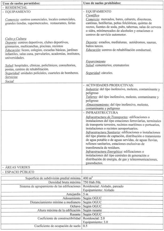 Las zonas mixtas corresponden a aquellas que albergan usos predominantes de tipo equipamiento y servicios (actividades comerciales, de seguridad, culto y cultura, de servicios, institucionales, otros) y en menor grado de vivienda. Las zonas denominadas mixtas corresponden a aquellas caracterizadas, en general, por presentar la mayor diversidad e intensidad de usos, es decir, aquellos sectores donde confluyen y se desarrollan la mayoría de las actividades urbanas complementarias al uso residencial.