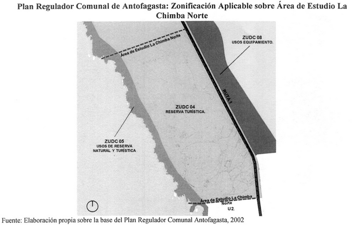 Si bien la carta de inundaciones por Tsunami elaborada por el SHOA no considera el área de La Chimba Norte, de acuerdo a las características topográficas de la costa, y las fuentes bibliográficas revisadas, es posible deducir que en la eventualidad de producirse movimientos sísmicos en el mar, podría tener un efecto sobre las costas del área de planificación en los sectores bajos que se disponen sobre la plataforma de abrasión que presenten alturas inferiores a los 10 m.s.n.m. Estas se disponen fundamentalmente en la porción central y sur del área de modificación, sin perjuicio que no constituyan bahías profundas donde los tsunamis tienen su mayor expresión. Considerando lo anterior, se recomienda se mantengan libres de construcciones que impliquen la presencia prolongada de personas sobre los 20 m.s.n.m. para los sectores bajos.