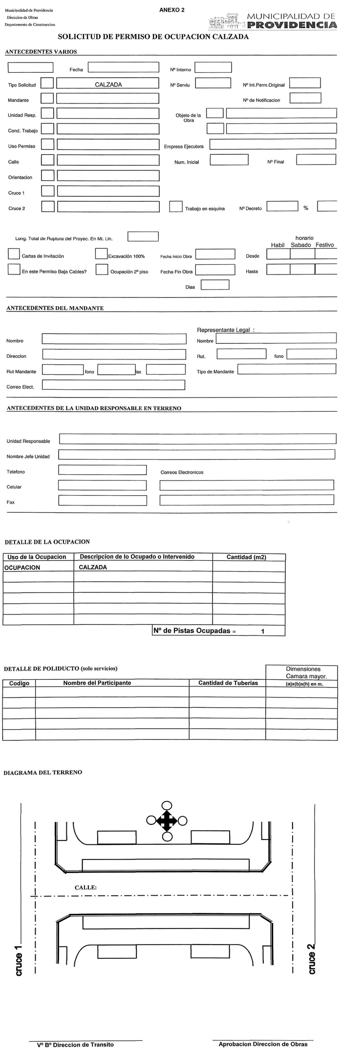 Las solicitudes que impliquen ocupación y/o ruptura de calzadas deberán contar con el visto bueno de la Dirección de Tránsito y la autorización de la Dirección de Obras.