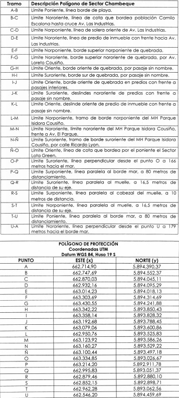 Artículo 1º: Declárase Monumento Nacional en la categoría de Monumento Histórico al "Sector de Chambeque", ubicado en la comuna de Lota, provincia de Concepción, Región del Biobío.