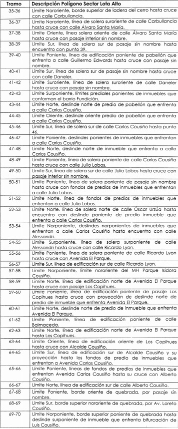 Artículo 2º: Declárase Monumento Nacional en la categoría de Zona Típica o Pintoresca al "Sector de Lota Alto", ubicado en la comuna de Lota, provincia de Concepción, Región del Biobío.