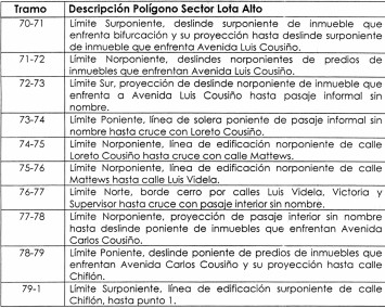 Que los valores que se identifican en los Sectores de Chambeque y Lota Alto son los siguientes: