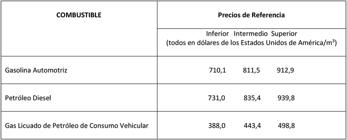 1.- Fíjanse los Precios de Referencia de los siguientes combustibles derivados del petróleo: