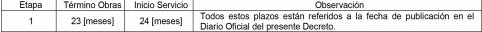 1. Autorízase a la concesionaria para modificar los plazos de término de obras e inicio de servicio, de la Estación Base denominada "Comsa Chile, Tramo Medio - Villa Santa Lucía", autorizada mediante decreto exento Nº 473, de 2012, según se indica a continuación: