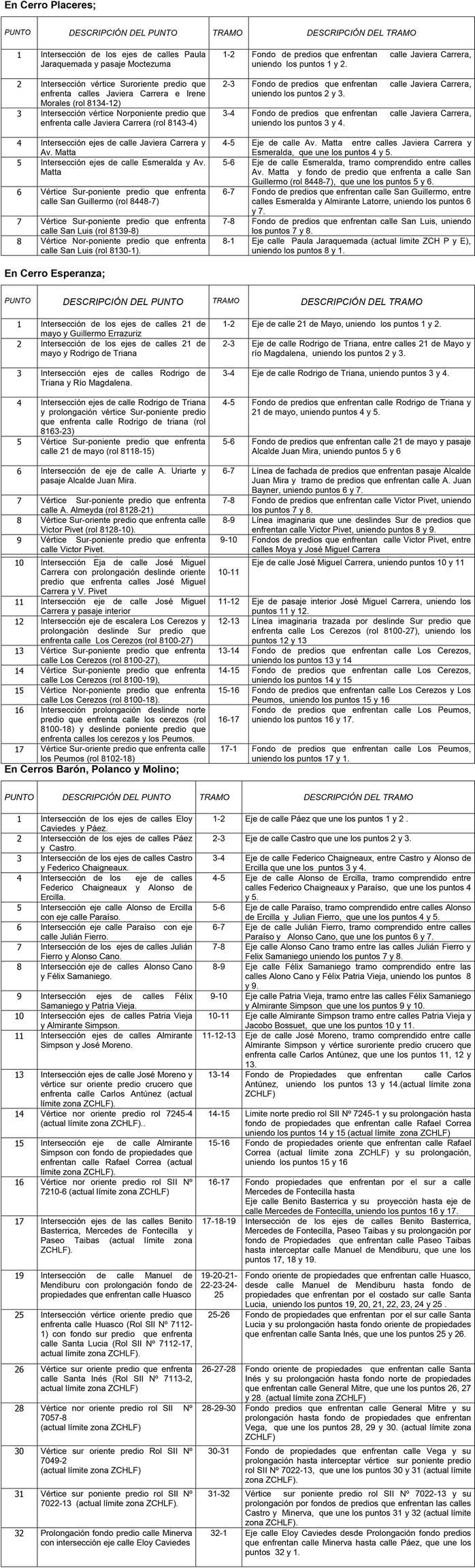 - ZCH P y E en el sector correspondiente a parte de los cerros Placeres y Esperanza.