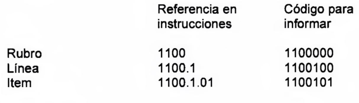 La información de los rubros y líneas para la información complementaria