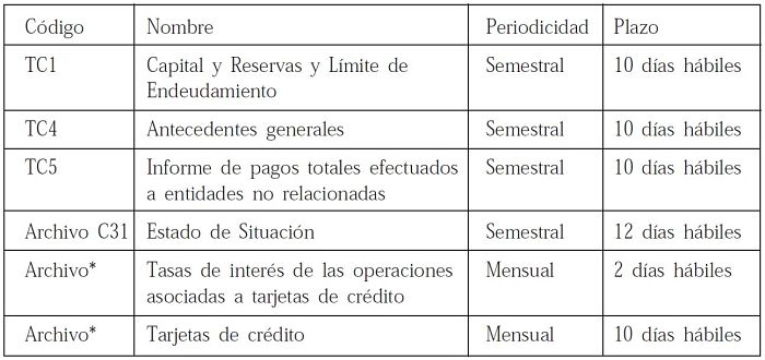 de Crédito, de acuerdo con lo establecido en las normas del Banco Central de