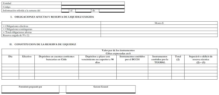 El formulario se referirá a la reserva de liquidez mantenida en cada uno de los