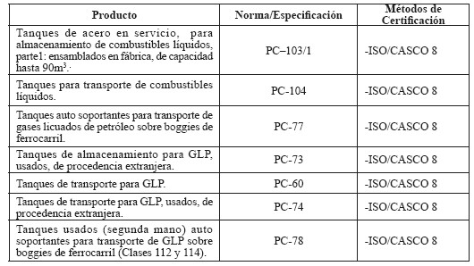 1.3.1 Organismo de Certificación, CP 051, según NCh2411.Of2003, "Requisitos Generales para Organismos que Operan Sistemas de Certificación de Productos", en el Sistema Nacional de Acreditación del INN, para los Protocolos SEC PC-103/1; PC-104; PC-77; PC-59; PC-73; PC-60; PC-74 y PC-78 de fecha 27 de diciembre de 2011 y vigente hasta el día 25 de mayo de 2015.