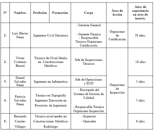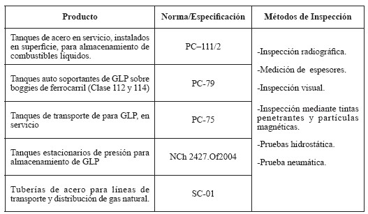 1.3.2 Organismo de Inspección Tipo A, OI 015, según NCh17020:Of2012, "Criterios Generales para la operación de Organismos de Inspección, para el área Productos", en el Sistema Nacional de Acreditación del INN, para los protocolos SEC PC-111/2; PC-79; PC-75; NCh2427.Of 2004 y SC-01 de fecha 27 de diciembre de 2011 y vigente hasta el día 31 de agosto de 2015.