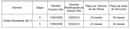Las demás características técnicas, no consideradas en la presente solicitud de modificación, permanecerán inalterables, de conformidad a lo autorizado en los decretos exentos Nº 1.183 de 2009 y Nº 1.196 de 2009, ambos del Ministerio de Transportes y Telecomunicaciones.