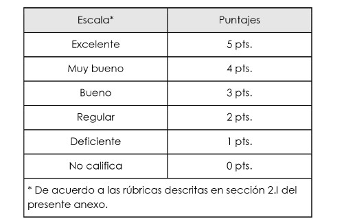 A continuación, se señalan los criterios que determinan la elección del puntaje para cada sub-criterio.