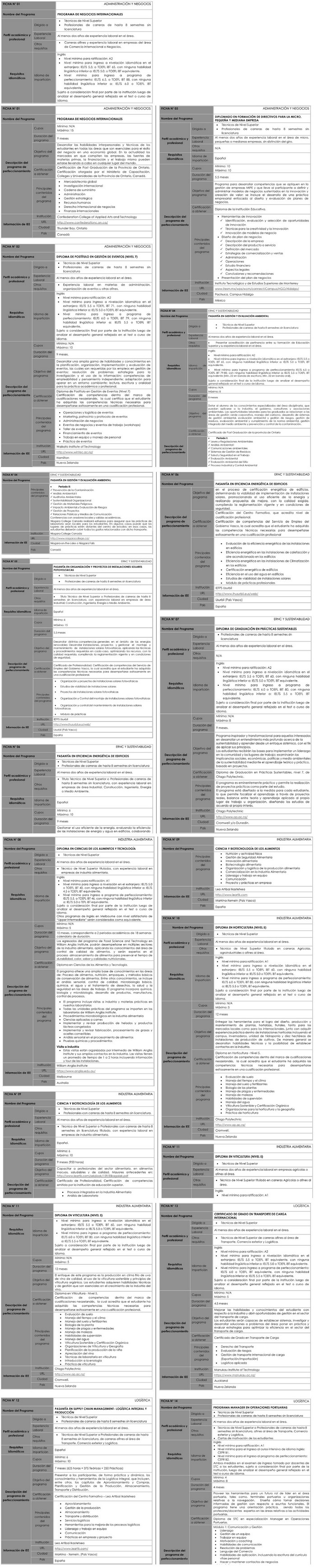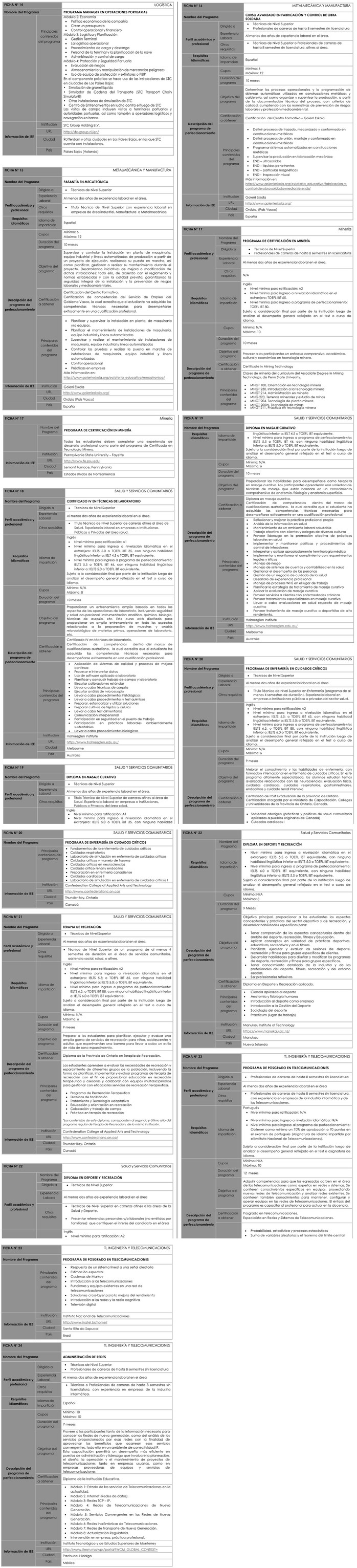 Se detallan a continuación los antecedentes referidos a las Áreas Disciplinarias de Postulación y a los Programas de Perfeccionamiento. Los contenidos y duración descrita de los programas pueden sufrir variaciones, en caso que las Instituciones Educacionales Extranjeras realicen ajustes de acuerdo a las necesidades de formación de los sectores productivos u otras razones. Asimismo, la certificación descrita puede sufrir variaciones una vez que la Institución Educacional Extranjera aplique un diagnóstico de competencias de los seleccionados, para así ajustar los contenidos a las necesidades formativas del becario.