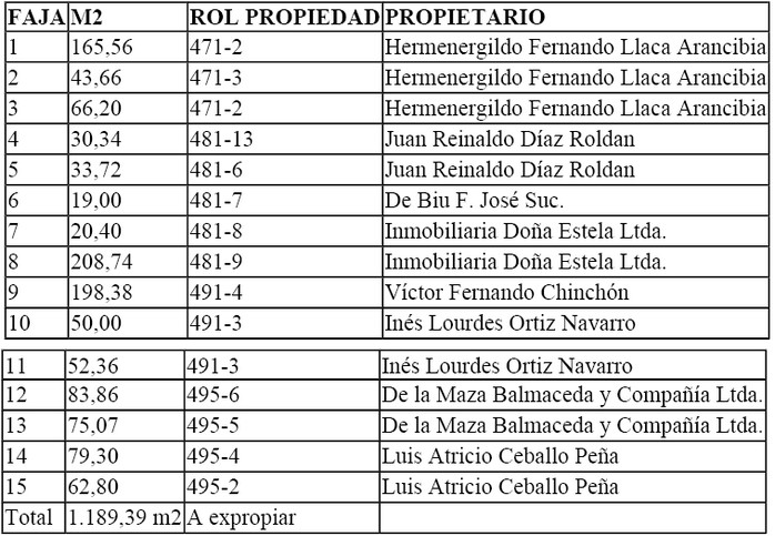 1. Autorízase a la Secretaria Comunal de Planificación para realizar estudio de expropiación de calle Ignacio Carrera Pinto, en su extensión poniente entre Avenida Las Palmas de Mallorca y Vicepresidente Bernardo Leighton en todos los inmuebles afectos a expropiar de acuerdo a plano adjunto, cuyo detalle de deslindes se identifica en forma general a continuación, practicándose las correspondientes anotaciones marginales e inscripciones ante el Conservador de Bienes Raíces de Villa Alemana: