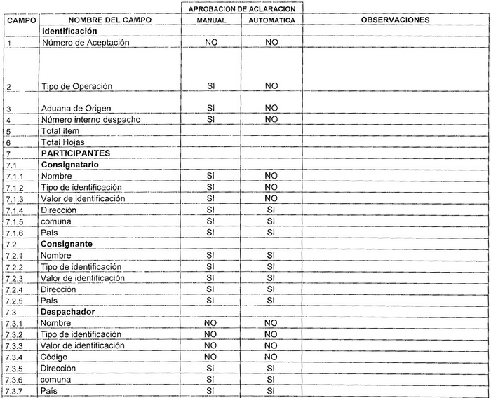 En el Anexo Nº 33 - C de este Compendio, se detallan los campos cuya aclaración podrá ser autorizada en forma automática por el sistema y aquellos que quedarán pendientes para la aprobación por parte de un funcionario de Aduanas, dependiendo del estado de la operación.