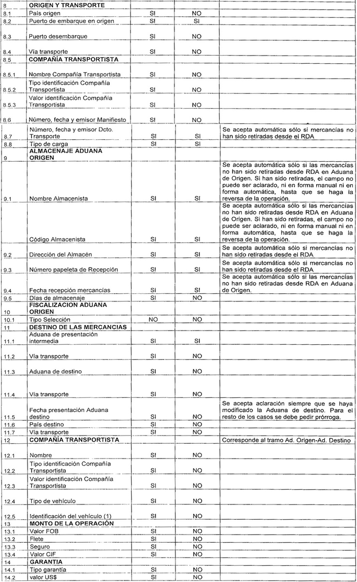 Una vez realizadas todas las reversas que dejan las mercancías, a nivel de sistema, situadas en el recinto de depósito aduanero de la Aduana de Origen, el usuario podrá transmitir su solicitud de aclaración, la que, dependiendo del tipo de campo que se solicita aclarar, podrá ser autorizada en forma automática por el sistema o quedará a la espera de su aprobación por parte de un funcionario de la Aduana de origen. Una vez autorizada la aclaración e impactada en el sistema, las Aduanas que hayan intervenido en la operación deberán registrar en el sistema nuevamente el cumplido y/o cancelación de la operación, hasta dejarla en la situación en que se encontraba cuando se solicitó la modificación.".