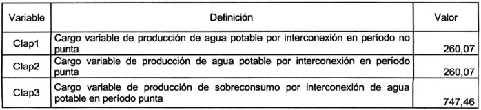 2.6.1.1. Cargo variable de producción de agua potable por interconexión en periodo no punta: