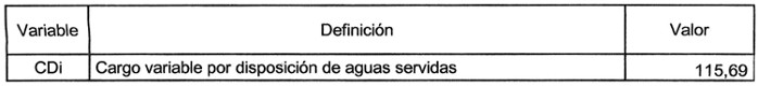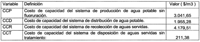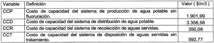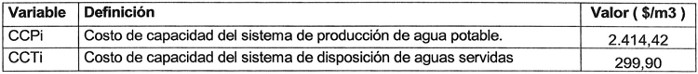 En caso que la disposición se realice con tratamiento final de aguas servidas, el costo de capacidad del sistema de disposición de aguas servidas (CCTi) se incrementará en 280,29 pesos por metro cúbico.