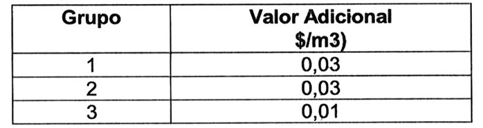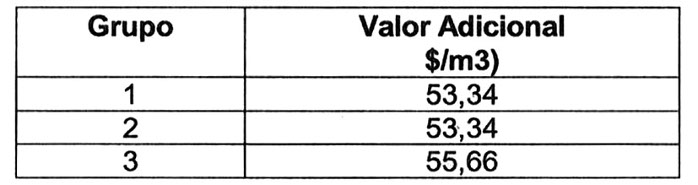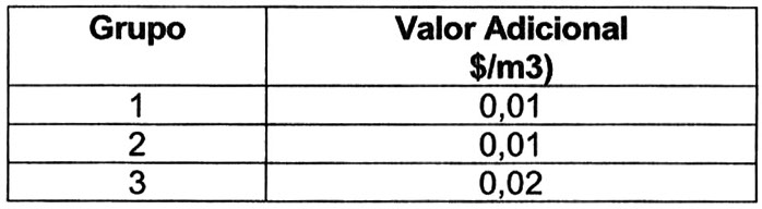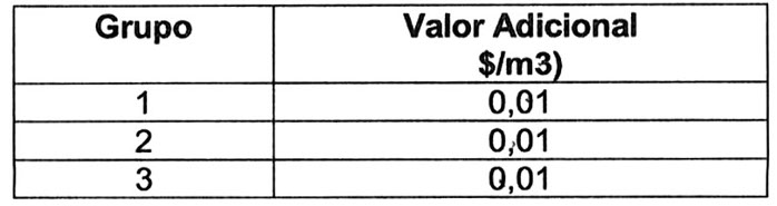 En las zonas abastecidas por sistemas de producción que incorporen la fluoruración del agua potable, el cargo CV1 se incrementará en VAF pesos por metro cúbico para las localidades de cada grupo tarifario, según los valores presentados a continuación:
