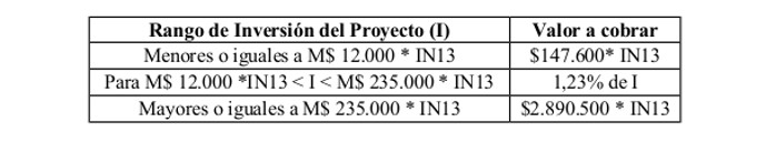 . Donde I corresponde al monto total de la construcción del proyecto, en pesos.