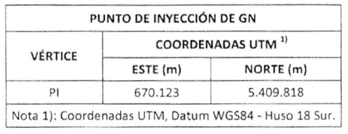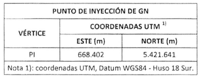Tercero. El punto de inyección de suministro a la red de distribución, en la comuna de Puerto Montt, se proyecta ejecutar de acuerdo con lo indicado en los planos Nº 2936-PJ01-001 "Plano General de las Obras Zona de Servicio Distribución de Gas Puerto Montt" y Nº 2936-PP01-001 "Red Terciaria de la Zona de Servicio de la Comuna de Puerto Montt", ambos en Revisión 1. El lugar donde se proyecta el punto de inyección se indica en la Tabla 3, en coordenadas UTM, Datum WGS84-Huso 18 Sur.