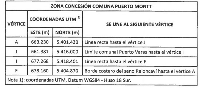 Tabla 6. Cuadro de coordenadas – Zona de Concesión comuna de Puerto Montt