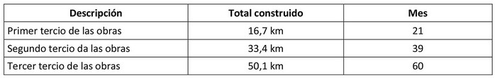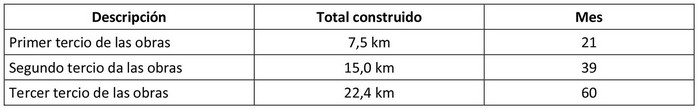 Tabla 15. Cumplimiento de tercios de las obras, referido a la construcción de los 22.425 metros de red, comuna de Puerto Varas.