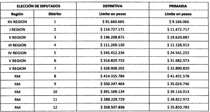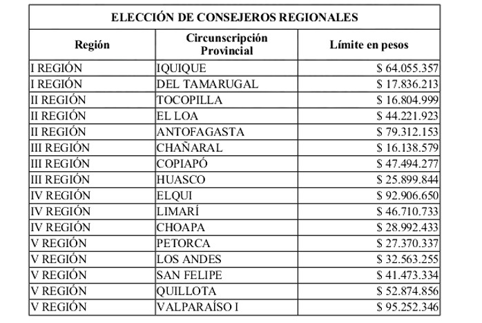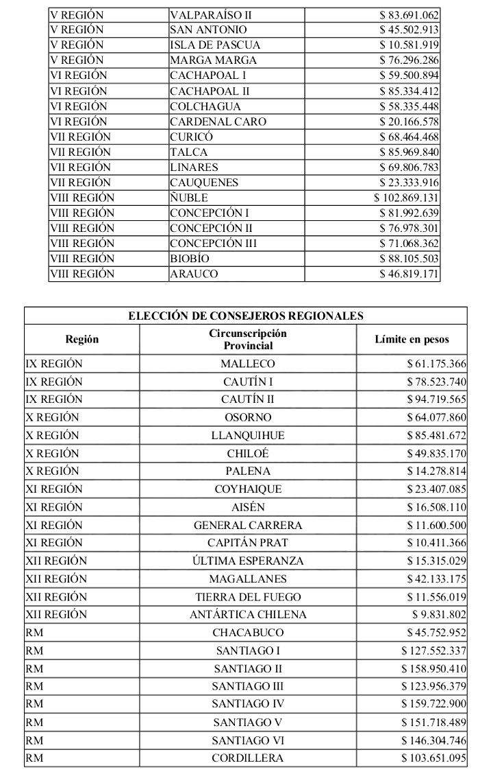 DETERMINA LÍMITES DE GASTOS ELECTORALES CON OCASIÓN DE LAS ELECCIONES PRESIDENCIALES, PARLAMENTARIAS Y DE CONSEJEROS REGIONALES 2017, EVENTUALES ELECCIONES PRIMARIAS Y SEGUNDA VUELTA DE ELECCIONES PRESIDENCIALES