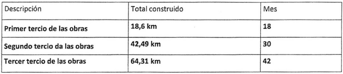 Tabla 6. Cumplimiento de tercios de las obras, referido a la construcción de los 64.312 metros de red