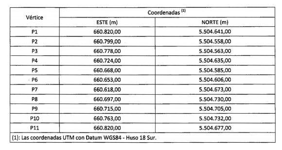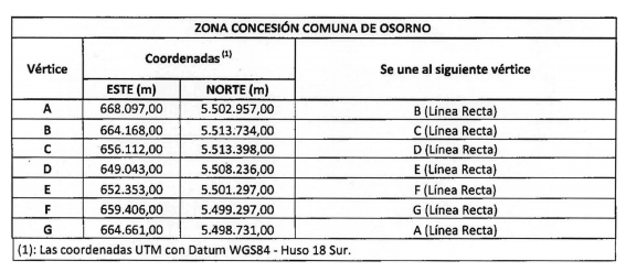 Tabla 3: Cuadro de Coordenadas - Zona de Concesión comuna de Osorno