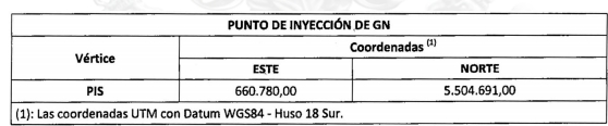 Tabla 2: Cuadro de Coordenadas - Punto de Inyección Proyectado