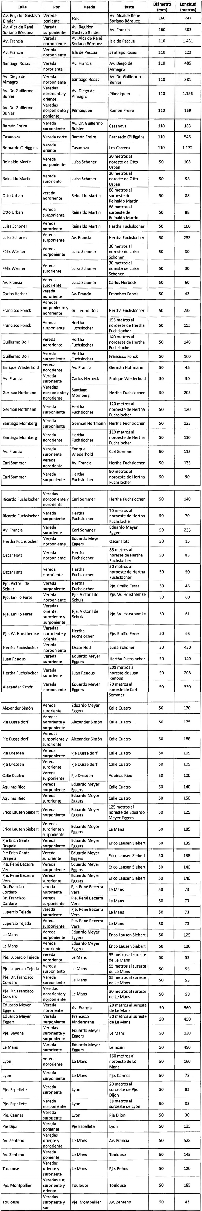 Artículo 7º.- La red de distribución estructural de diámetros 160 mm y 110 mm, tendrá una longitud aproximada de 6.214 metros en tubería de polietileno PE 80 SDR 11. Por otra parte, la red de distribución terciaria de diámetro 50 mm tendrá una longitud aproximada de 58.098 metros en tubería de polietileno PE 80 SDR 11. En total, la red de distribución tendrá una longitud de 64.312 metros.