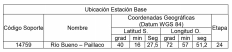 1. Autorízase a la concesionaria para rectificar las coordenadas de una (1) estación base, autorizada por decreto exento Nº 160, de 2009, quedando según se indica a continuación: