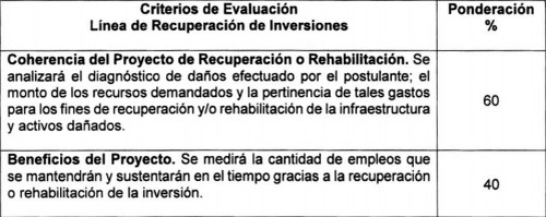 Para los efectos de este instrumento se excluyen de esta línea sólo las inversiones de recuperación o rehabilitación de infraestructura no destinada a una actividad productiva o de servicios en funcionamiento a la fecha del siniestro, emergencia o catástrofe.