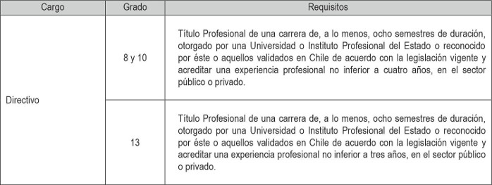 . 1.2 Directivos de Carrera sujetos al artículo 8º del Estatuto Administrativo: