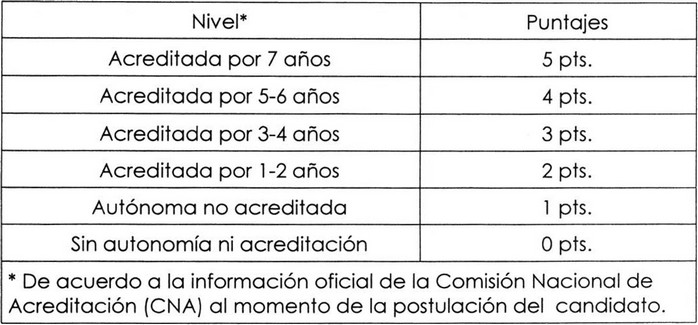 . II. Criterio "Antecedentes académicos del postulante", subcriterio "Nivel de acreditación y/o autonomía de la institución de titulación":