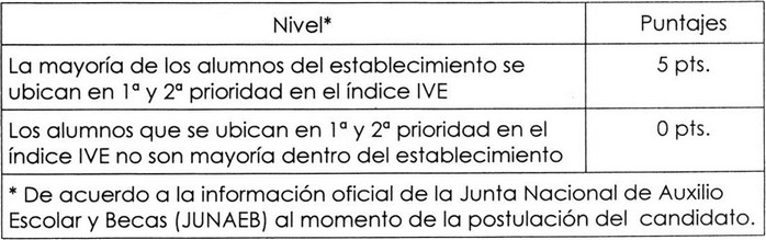 . III. Criterio "Contexto del establecimiento patrocinante", subcriterio "Nivel de vulnerabilidad del establecimiento (medido en índice IVE)":