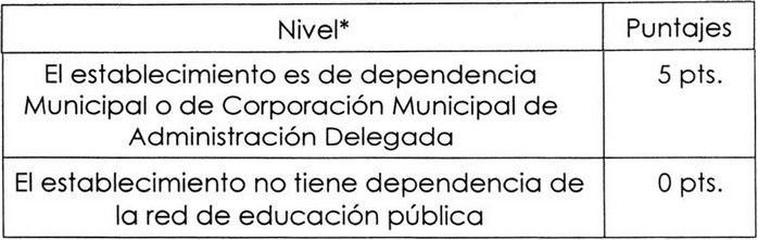 . IV. Criterio "Contexto del establecimiento patrocinante", subcriterio "Pertenencia del establecimiento a la red de educación pública":