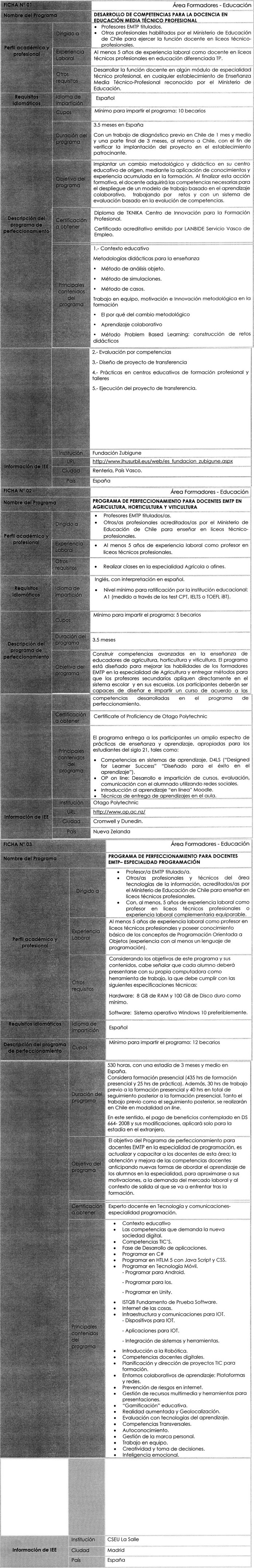 Programa de Perfeccionamiento para Docentes EMTP - Especialidad Programación, España - Ficha N° 3.