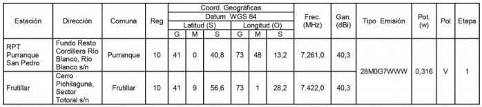 1. Autorízase a la concesionaria a instalar, operar y explotar un (1) radioenlace punto a punto, cuyas características se indican a continuación: